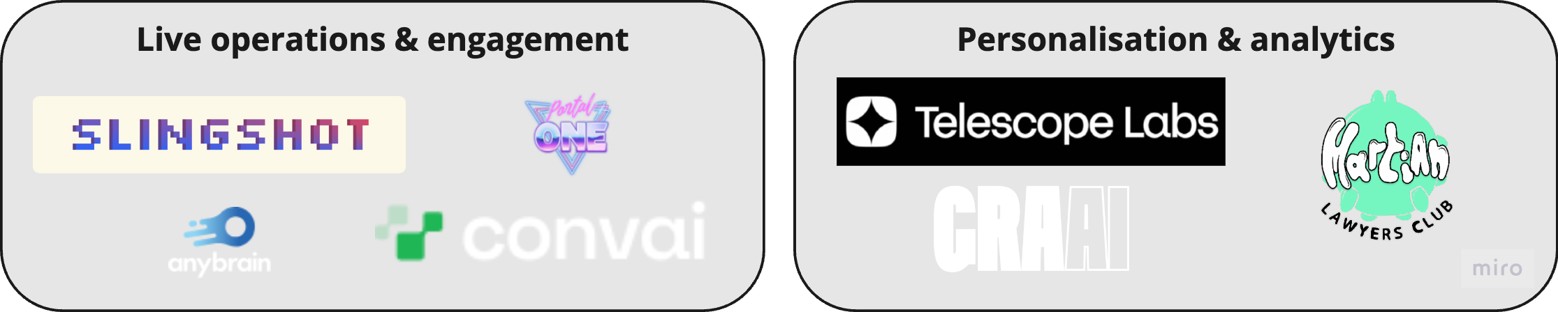 So tools and platforms that enable detailed analytics and personalisation are pivotal, particularly for mobile game developers in a post-ATT world, where targeted user acquisition has become more challenging and cost pers install has skyrocketed. In this new environment, marketing strategies have to be sophisticated, personalised to keep acquisition costs low. AI that can help here will be useful.